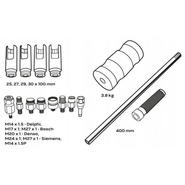 ŚCIĄGACZE DO WTRYSKÓW Z MŁOTKIEM BEZWŁADNOŚCIOWYM - ZESTAW 14 SZT.