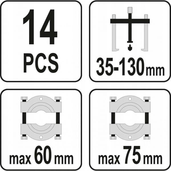 YATO ZESTAW ŚCIĄGACZY I SEPARATORY 14EL ODKLEJACZ WALIZKA YT-06412 35-130MM