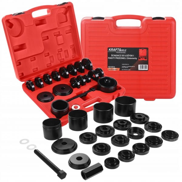 Profesjonalny zestaw ściągaczy do łożysk i piast polskiej marki Kraft&Dele o oznaczeniu KD10514. Produkt stworzony z myślą o użytkownikach domowych, warsztatowych oraz zakładów pracy.