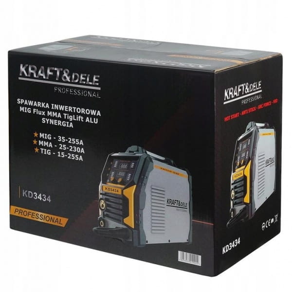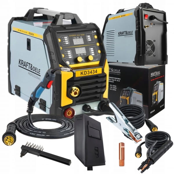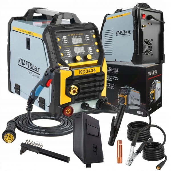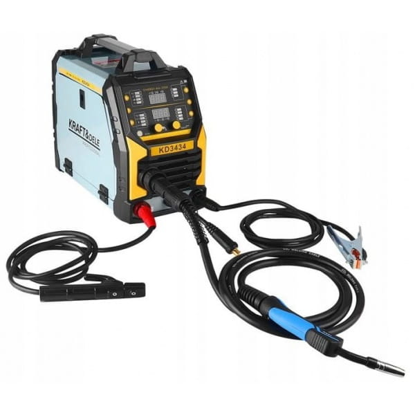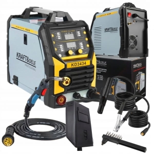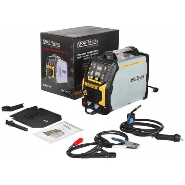 Spawarka inwertorowa KD3434 to wielofunkcyjne urządzenie, które obsługuje spawanie metodami MIG Flux, MMA oraz Tiglift. Dzięki temu sprawdzi się zarówno w profesjonalnych warsztatach, jak i dla majsterkowiczów. Urządzenie cechuje się solidną konstrukcją oraz łatwą obsługą, co pozwala na precyzyjne i efektywne spawanie różnych materiałów.