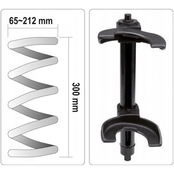 - Ściągacz posiada wymienne uchwyty, umożliwiające obsługę sprężyn o średnicy od 65 mm do 212 mm.