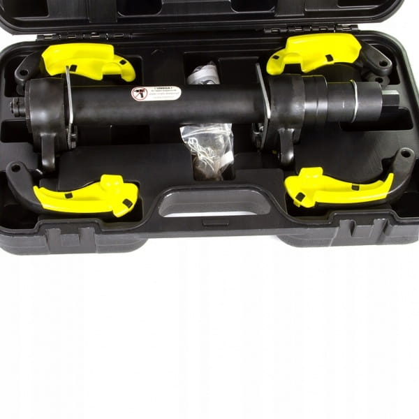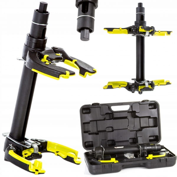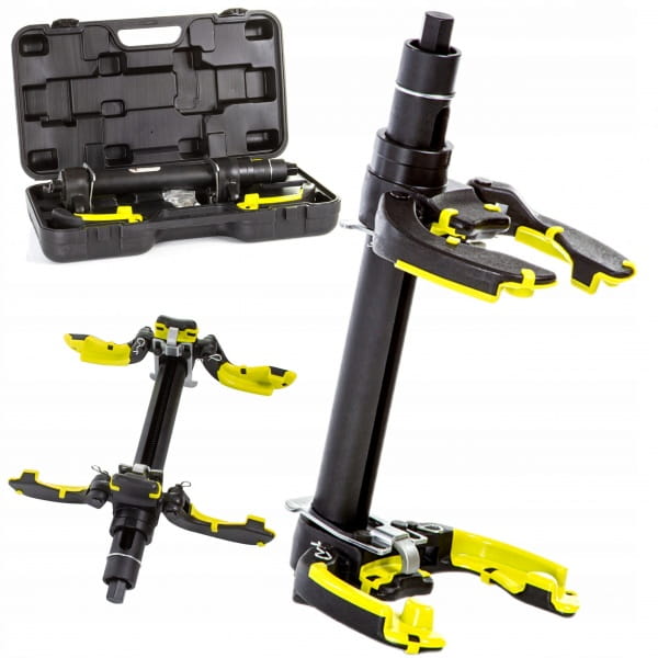 Ściągacz do sprężyn McPherson w samochodach osobowych i dostawczych. Posiada dwie blokady bezpieczeństwa zapobiegające zsunięcie się sprężyn przy ich ściskaniu.