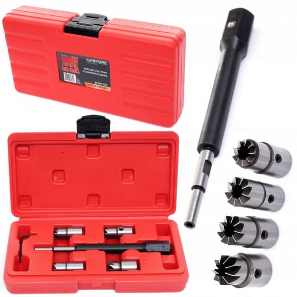 Komplet frezów do marki Kraft&Dele model KD10056 przeznaczony do czyszczenia i dekarbonizacji gniazd wtryskiwaczy. Usuwa nagar z gniazda wtryskiwacza umożliwiając dopasowanie wtryskiwacza w gnieździe. Usunięcie nagaru i wygładzenie gniazda wtryskiwacza umożliwia szczelne przyleganie podkładki do gniazda wtryskiwacza. Stosowanie zestawu zapobiega nieszczelnościom, które powodują wypalanie gniazda i niszczenie bloku silnika. Swoje zastosowanie znajduję w większości pojazdów osobowych wyprodukowanych po 2000 roku.
