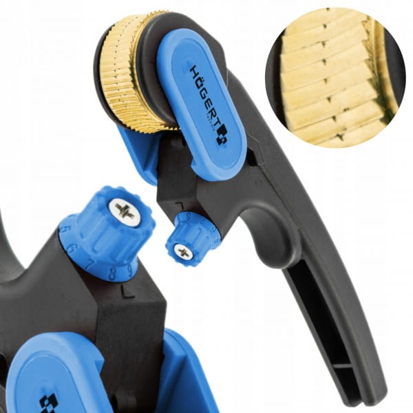 - posiada dźwignię z zębatką prowadzącą, ułatwiającą przesuwanie narzędzia po kablu;