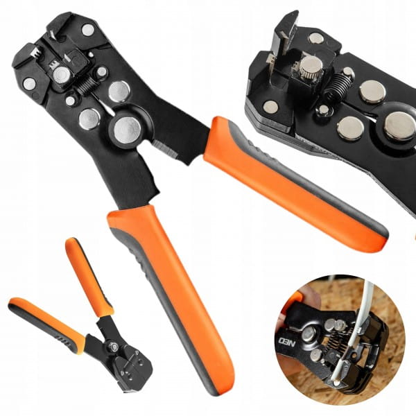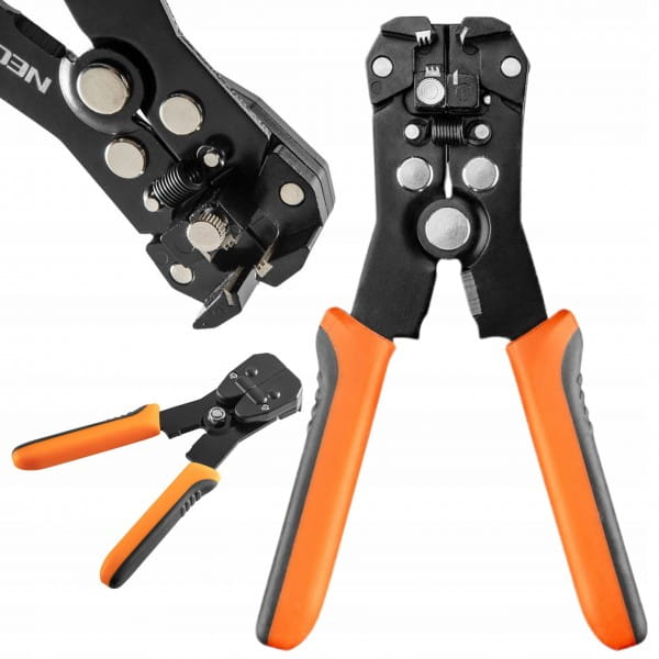Automatyczny ściągacz izolacji NEO (nr ref. 01-534) czołowy, o rozmiarze 180 mm służy do ściągania izolacji oraz zaciskania końcówek konektorowych. Zakres pracy dla ściąganych izolacji od 0.5 do 6 mm2 (24-10 AWG), oraz dla zaciskania końcówek 1.5 do 6 mm2. Szczęki wykonane są z wyjątkowo wytrzymałej stali SK5 o twardości 52 - 60 HRC, co zapewnia długoletnią wytrzymałość narzędzia. Uzupełnieniem narzędzia jest obcinak przewodów a dwumateriałowy, ergonomiczny uchwyt podniesie komfort pracy. Marka NEO spełnia oczekiwania profesjonalistów.