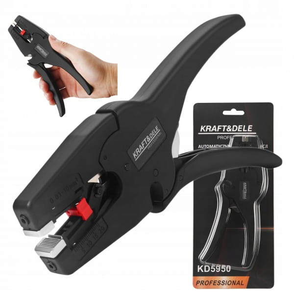 Profesjonalne, lekkie i precyzyjne szczypce KD5950 marki Kraft&Dele to idealne narzędzie do szybkiego i wygodnego usuwania izolacji z przewodów o przekroju od 0,03 do 10 mm². Ich automatyczny mechanizm działania sprawia, że doskonale sprawdzają się zarówno w warsztacie profesjonalisty, jak i w domowych zastosowaniach hobbystycznych.