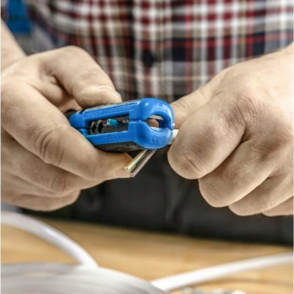 - ściągacz izolacji przewodów o grubości w zakresie od 0.5 do 6.0 mm² (AWG 20-10) oraz płaszcza kabli koncentrycznych w zakresie 8 – 13 mm²