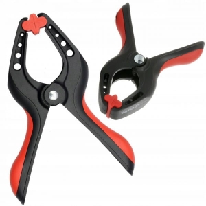 Ścisk sprężynowy 150 mm. Wykonany z tworzywa z silną sprężyną dociskową i ruchomymi płaskimi końcówkami dociskowymi. Do ściskania, mocowania, przytrzymywania podczas lekkich prac stolarskich i wykończeniowych, takich jak wiercenie, klejenie, nitowanie...