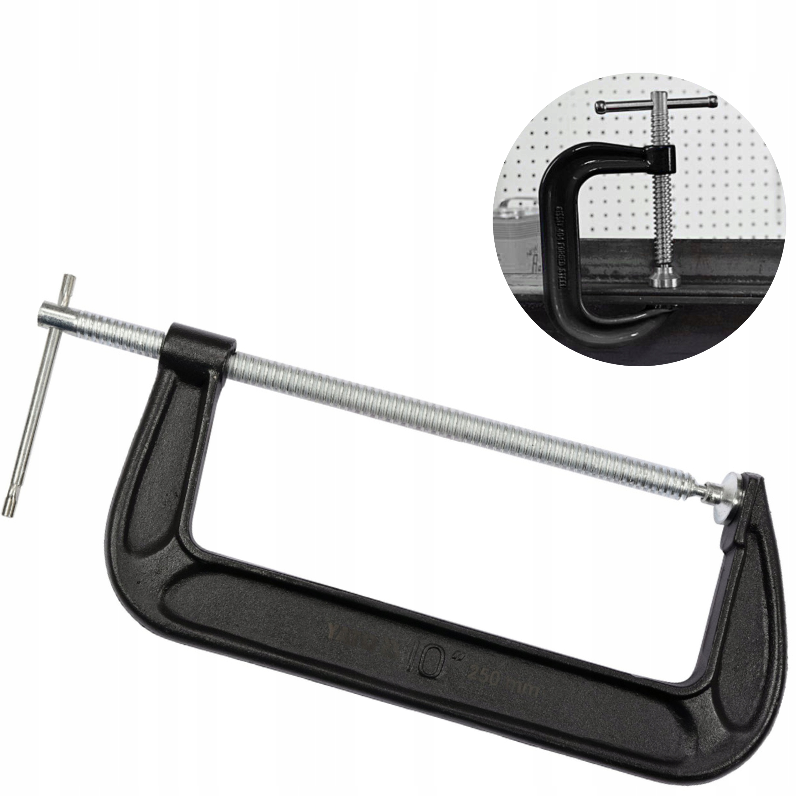 Stabilne ściski wykonane z wysokogatunkowego żeliwa ciągliwego. Posiadają śrubę dociskową z gwintem o specjalnym nakroju, wykonaną ze stali o symbolu A3 wykończoną cynkowaniem. Korpus z dodatkowym żebrowaniem wzmacniającym sztywność konstrukcji. Powierzchnia zabezpieczona przed korozją warstwą naniesionego proszkowo lakieru . Śruba dociskowa posiada ruchomą przetyczkę zabezpieczoną przed wypadaniem. Umożliwia ona bardzo silne dokręcanie mocowanego materiału. Rama jest wyjątkowo odporna na skręcanie i wibrację . Talerzyk dociskowy o dużej powierzchni , wykonany z metalu jest mocowany wahliwie na przegubie kulowym, ułatwia to precyzyjne dopasowanie ścisku do powierzchni materiału . Ścisk śrubowy typu C, dzięki swej konstrukcji jest jednym z najsilniej zaciskających ścisków, dlatego znajduje zastosowanie w ekstremalnych warunkach przemysłowych i budowlanych . Przy montowaniu ciężkich konstrukcji stalowych , pracach ciesielskich i dekarskich , stosowane często przy pracach spawalniczych . Do skutecznego, bardzo silnego zaciskania różnych materiałów.