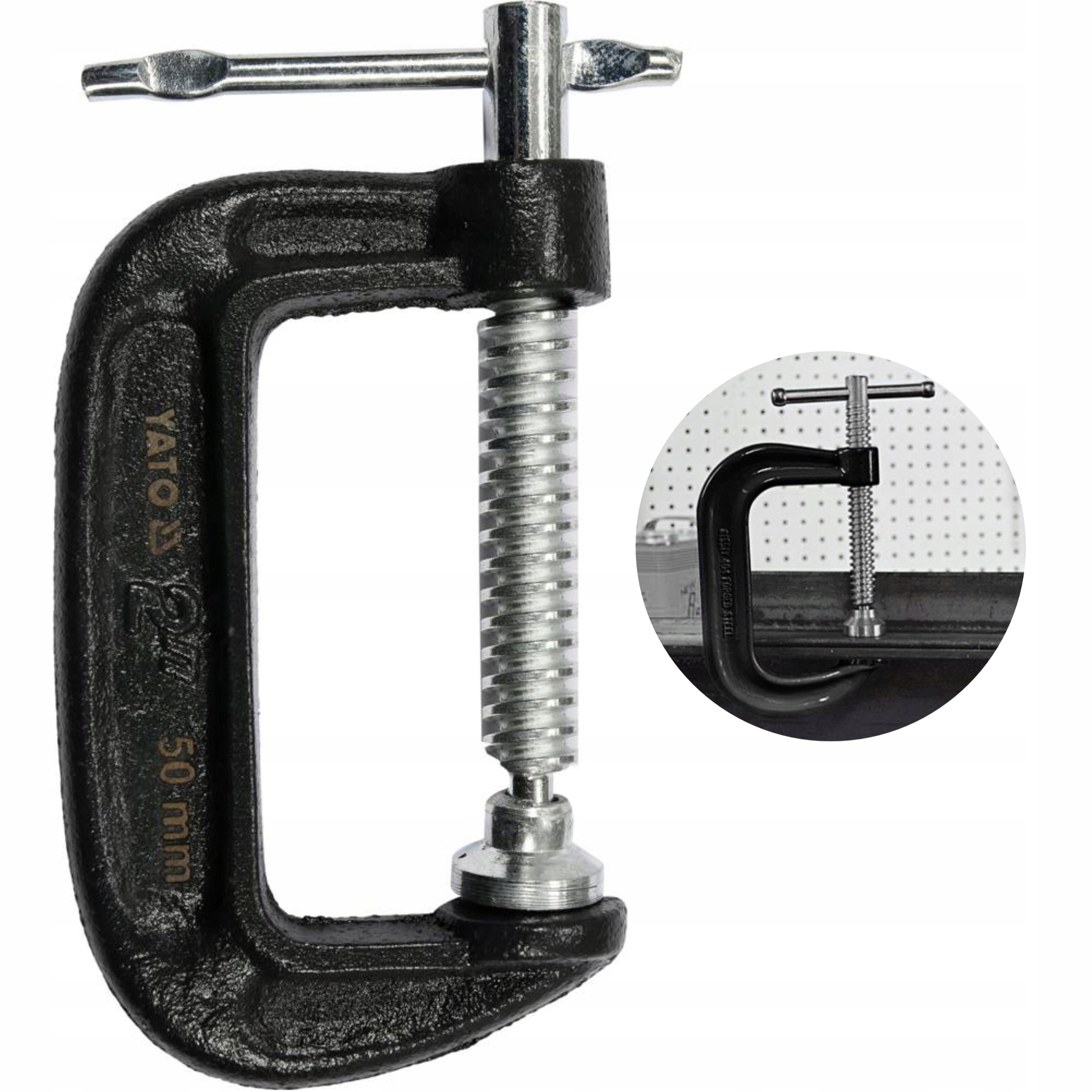 Stabilne ściski wykonane z wysokogatunkowego żeliwa ciągliwego. Posiadają śrubę dociskową z gwintem o specjalnym nakroju, wykonaną ze stali o symbolu A3 wykończoną cynkowaniem. Korpus z dodatkowym żebrowaniem wzmacniającym sztywność konstrukcji. Powierzchnia zabezpieczona przed korozją warstwą naniesionego proszkowo lakieru . Śruba dociskowa posiada ruchomą przetyczkę zabezpieczoną przed wypadaniem. Umożliwia ona bardzo silne dokręcanie mocowanego materiału. Rama jest wyjątkowo odporna na skręcanie i wibrację . Talerzyk dociskowy o dużej powierzchni , wykonany z metalu jest mocowany wahliwie na przegubie kulowym, ułatwia to precyzyjne dopasowanie ścisku do powierzchni materiału . Ścisk śrubowy typu C, dzięki swej konstrukcji jest jednym z najsilniej zaciskających ścisków, dlatego znajduje zastosowanie w ekstremalnych warunkach przemysłowych i budowlanych . Przy montowaniu ciężkich konstrukcji stalowych , pracach ciesielskich i dekarskich , stosowane często przy pracach spawalniczych . Do skutecznego, bardzo silnego zaciskania różnych materiałów.