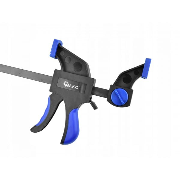 Wysokiej jakości jednoręczny ścisk stolarski renomowanej marki GEKO. System szybkiego przesuwu umożliwia obsługę ścisku jedną ręką. Posiada możliwość przełożenia górnej szczęki i używanie ścisku jak rozpieraka.