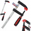 Dzięki solidnej konstrukcji, wykonanej z metalu i tworzywa sztucznego, ścisk charakteryzuje się wysoką trwałością oraz odpornością na uszkodzenia. Jego kształt w formie litery „F” zapewnia doskonałą stabilność oraz równomierne rozłożenie siły zacisku. Taka budowa umożliwia efektywne przytrzymywanie materiałów na całej długości szczęk, co minimalizuje ryzyko ich przesuwania się podczas pracy.
