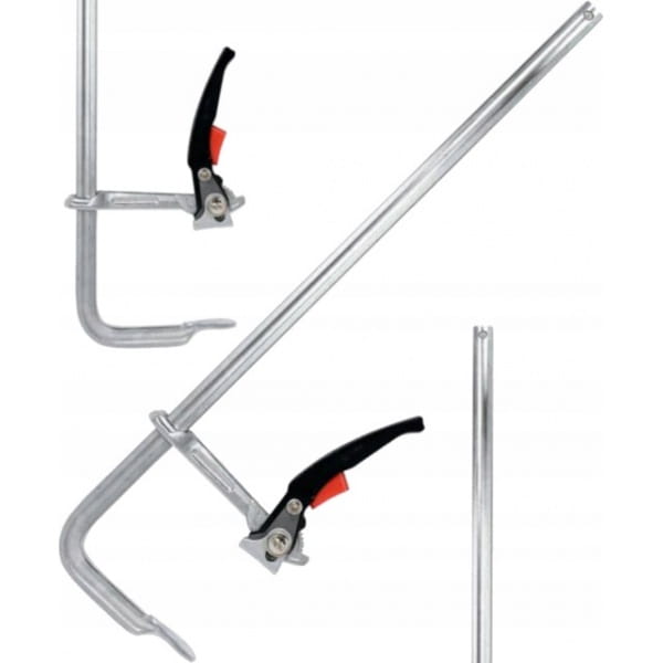 Ścisk z zapadkowym mechanizmem dociskającym. Gwarantuje bardzo silny, precyzyjnie stopniowany docisk szczęk. Stalowa konstrukcja zapewnia szybkie, stabilne mocowanie, odporne na skręcanie i wibracje. Odkuwana, profilowana prowadnica i mechanizm zapadkowy mogą być wykorzystane jako skutecznie działający rozpierak.