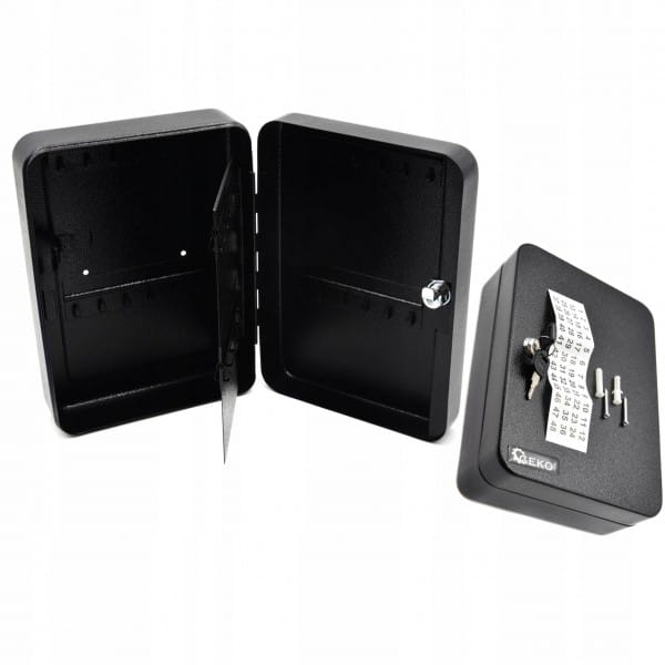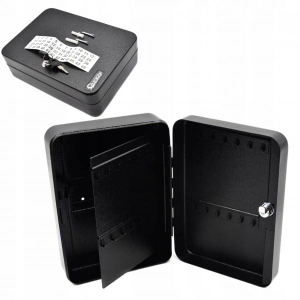 Metalowa skrzynka na klucze. Posiada haczyki do zawieszenia 48 sztuk kluczy (8 rzędów po 6 kluczy).