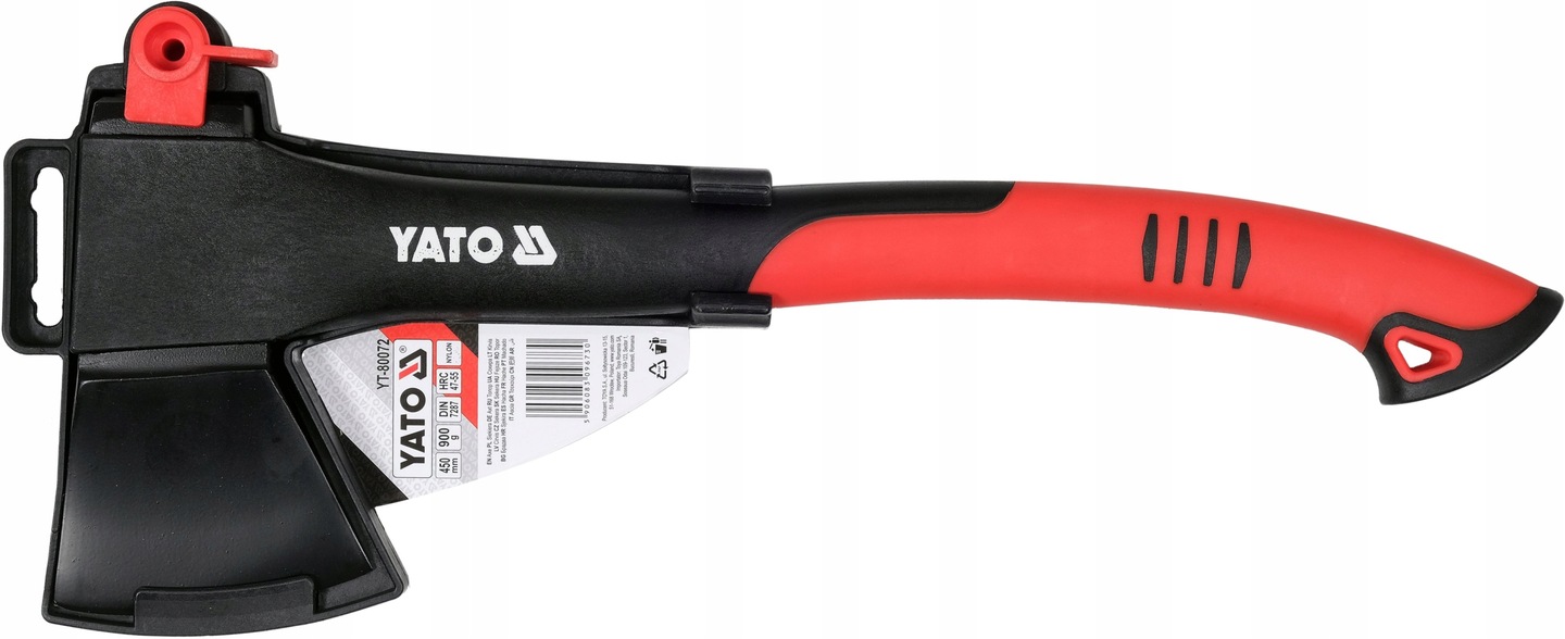 Siekiera z nylonową rękojeścią pokrytą gumowanym TPR zwiększającym pewność chwytu.