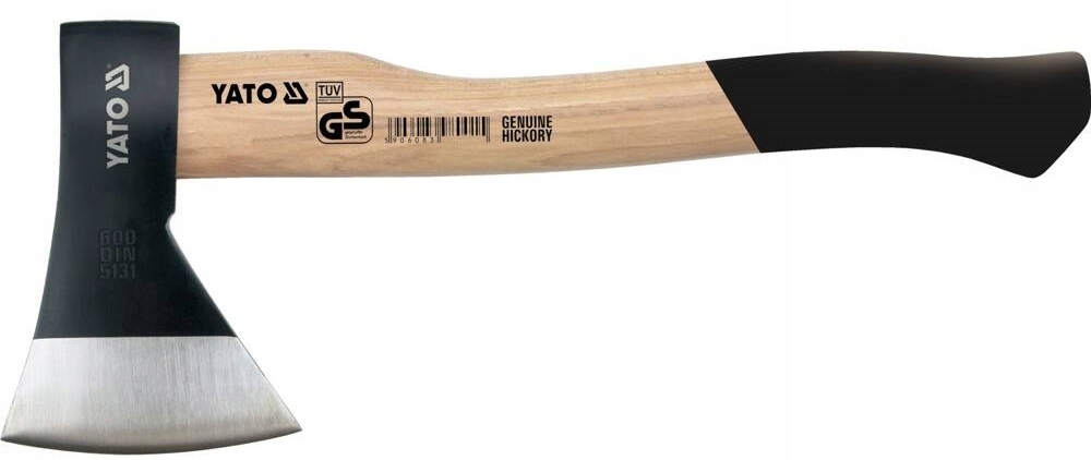 Osadzona na trzonku wykonanym z bezsękowego drewna hikorowego.
