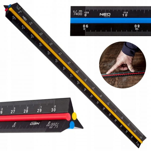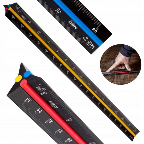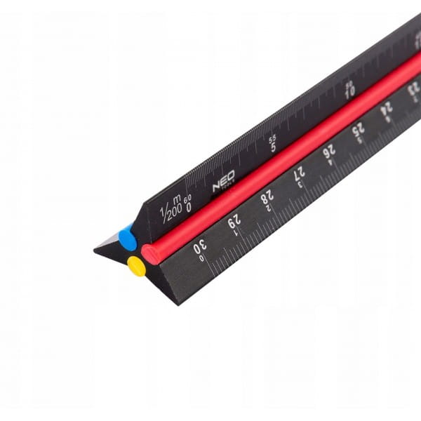 NEO LINIJKA TRÓJKĄTNA SKALÓWKA 30CM SKALA ALUMINIOWA KOLOR ZNACZNIK 72-205