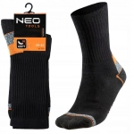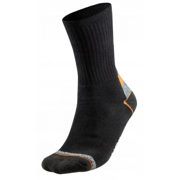 Specjalistyczne skarpety NEO wykonane z wysokiej jakości bawełny z dodatkiem poliestru i elastanu, zapewniają komfort i higienę pracy. Na palcach oraz piętach zastosowano wzmocnienia, które chronią przed szybkimi przetarciami. W dyskretnym czarnym kolorze z pomarańczowo-szarymi wstawkami.