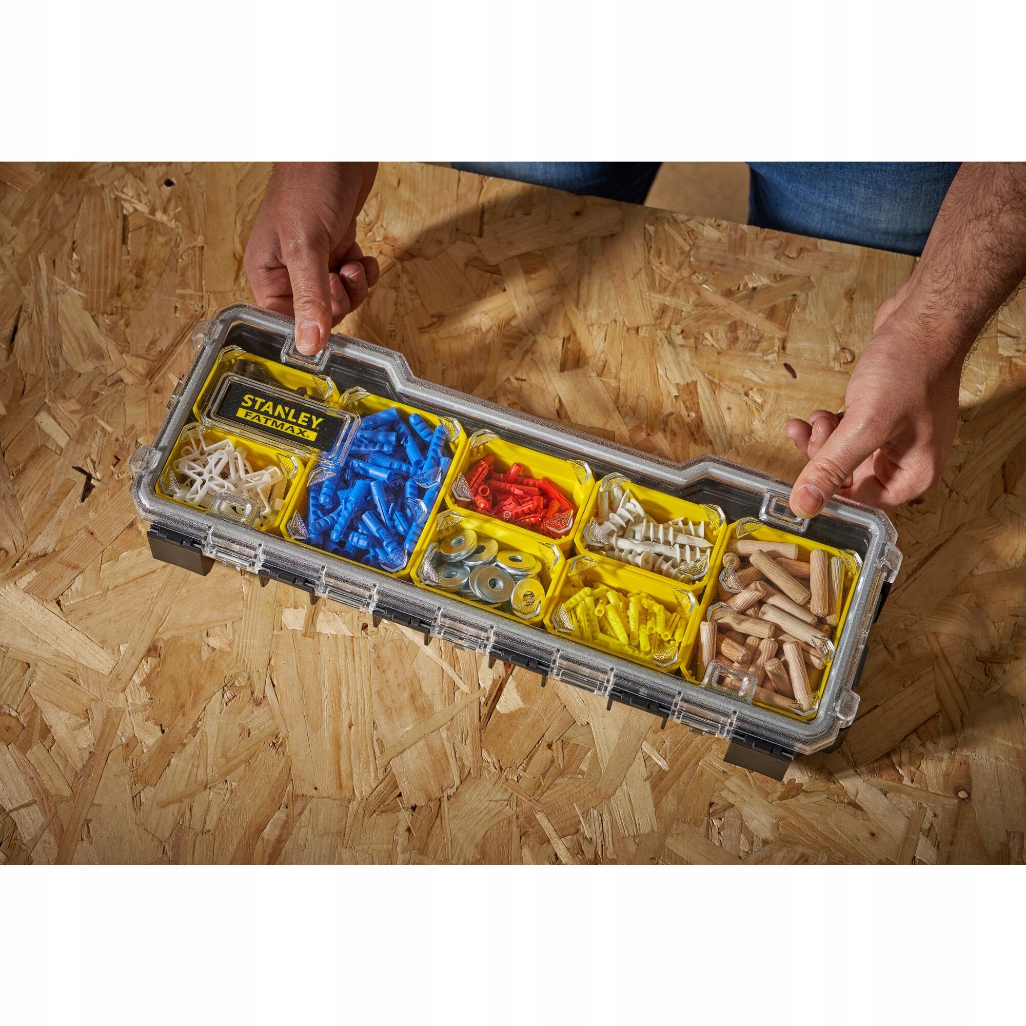• Wytrzymała, całkowicie przezroczysta pokrywa PC umożliwiająca pełen widoku oraz łatwy dostęp do przechowywanych części