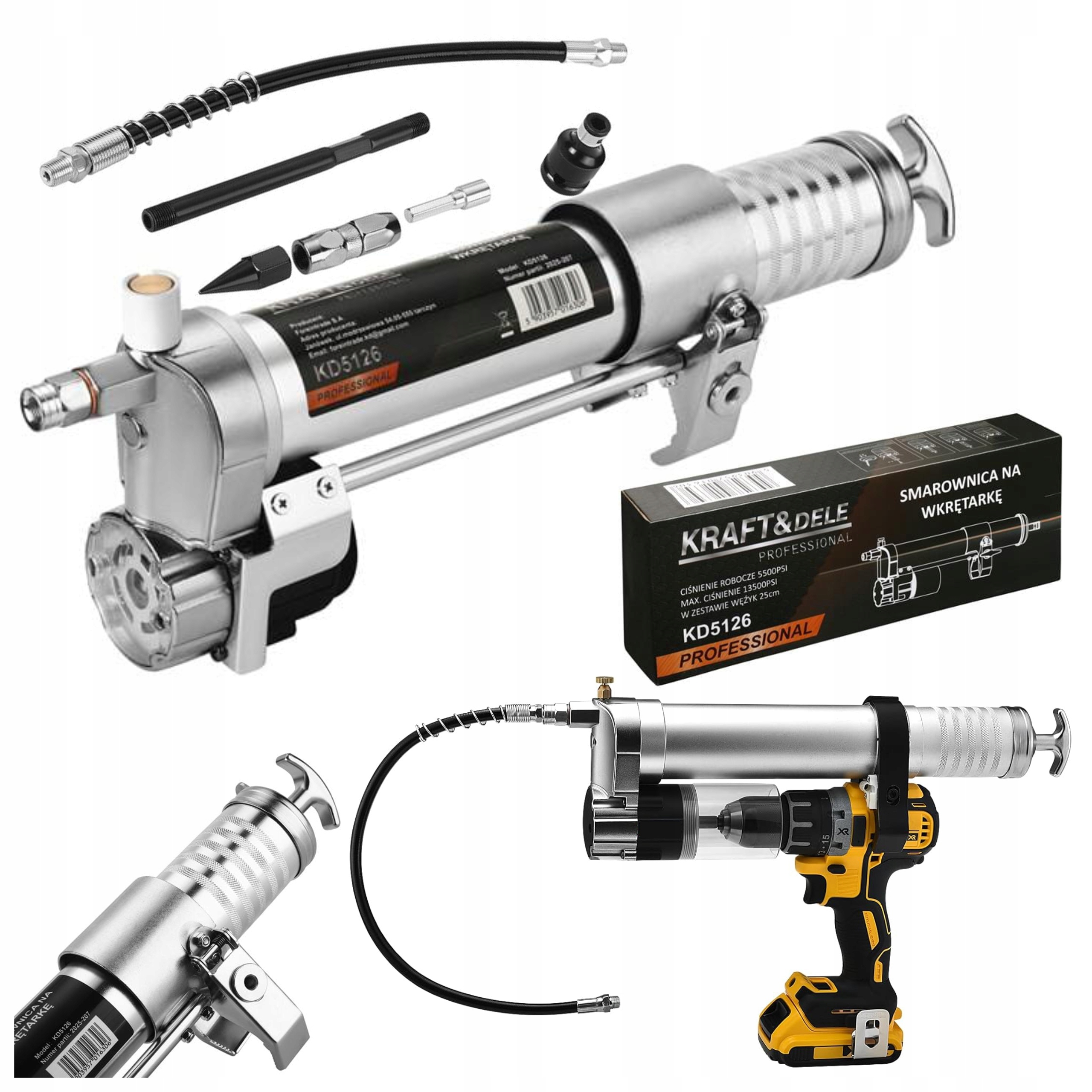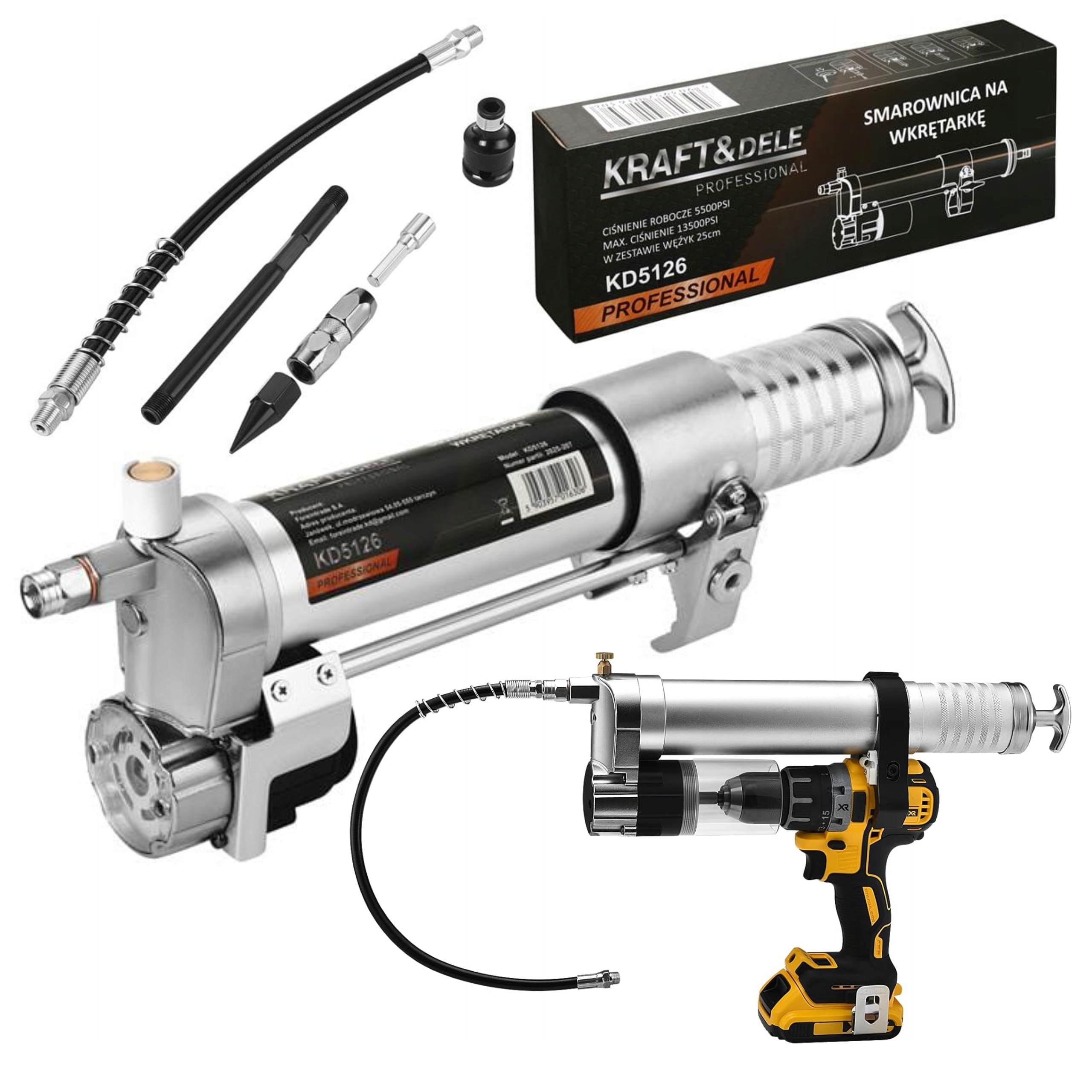 SMAROWNICA NA WKRĘTARKĘ Z WĘŻYKIEM to niezawodne narzędzie, które znacznie ułatwia smarowanie maszyn, pojazdów i urządzeń przemysłowych. Dzięki napędowi wkrętarką, urządzenie eliminuje konieczność ręcznego pompowania, co znacząco przyspiesza pracę i zwiększa komfort użytkownika.
