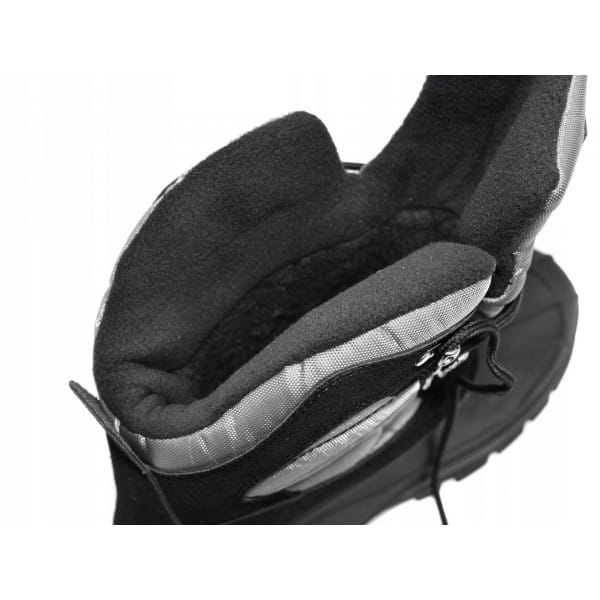 Gruba ocieplana podszewka buta z dzianiny futerkowej zapewnia doskonałą ochronę przed bardzo niskimi temperaturami. Haczykowy system wiązania zapewnia doskonałe dopasowanie buta do łydki.