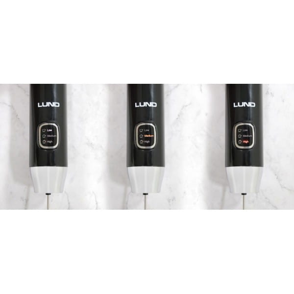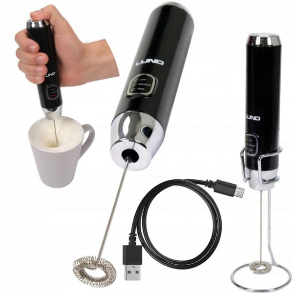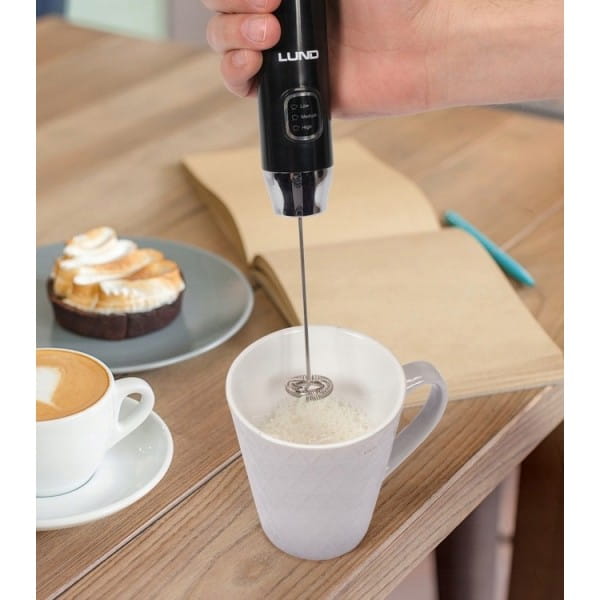 Elegancki, lekki i bezprzewodowy spieniacz do mleka marki LUND o mocy 5W i z trzema prędkościami do wyboru.