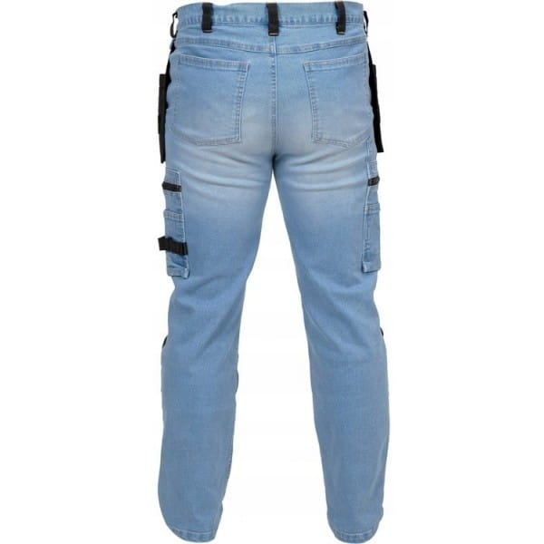 Spodnie robocze z serii stretch jeans spełniają wymagania rozporządzenia (UE) 2016/425 dla odzieży roboczej I kategorii.