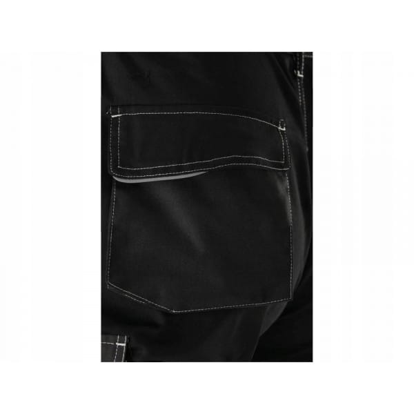 Dobrą organizację pracy ułatwi dziewięć kieszeni, w tym aż 6 z zapięciem na rzep. Specjalne odblaskowe linie oraz kontrastowe szwy poprawiają widoczność użytkownika. W pasie po bokach wszyto gumy sciągające. Na kolanach i w kierunku kostek zastosowano materiał o podwyższonej odporności na ścieranie.