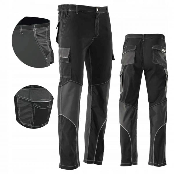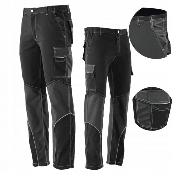 Spodnie robocze wykonane z wysokogatunkowej bawełny, wytrzymałego poliestru oraz elastanu. Elastan nadaje rozciągliwość, sprawia że spodnie lepiej dopasowują się do ciała. Bawełna jako materiał naturalny jest bardzo dobrze tolerowana przez ciało i jest łagodna dla skóry. Poliester, pomimo że jest lekki, nadaje wytrzymałość i nie wchłania wilgoci.