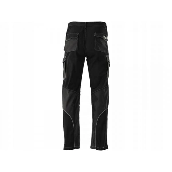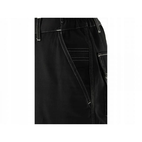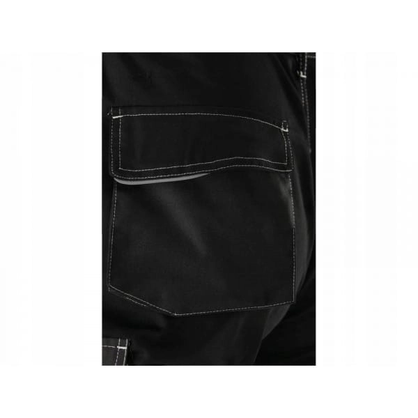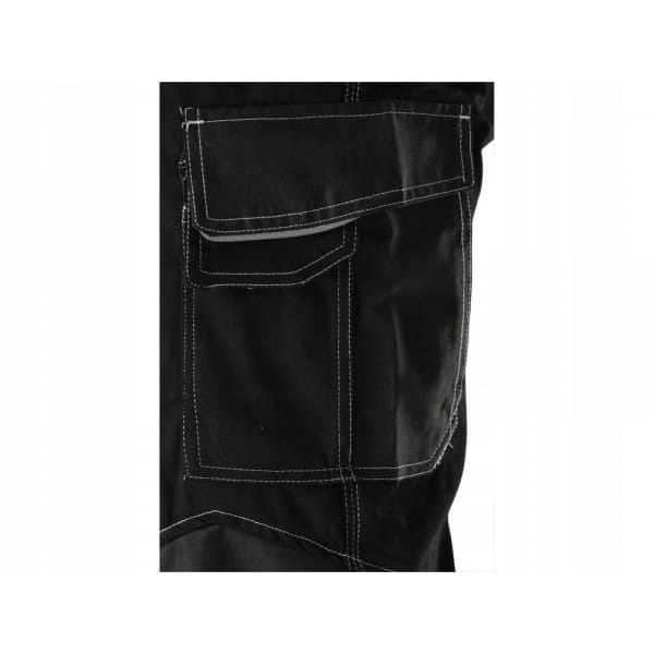 Dobrą organizację pracy ułatwi dziewięć kieszeni, w tym aż 6 z zapięciem na rzep. Specjalne odblaskowe linie oraz kontrastowe szwy poprawiają widoczność użytkownika. W pasie po bokach wszyto gumy sciągające. Na kolanach i w kierunku kostek zastosowano materiał o podwyższonej odporności na ścieranie.