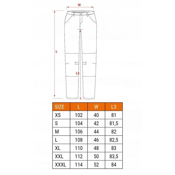 - Rodzaj odzieży roboczej: spodnie