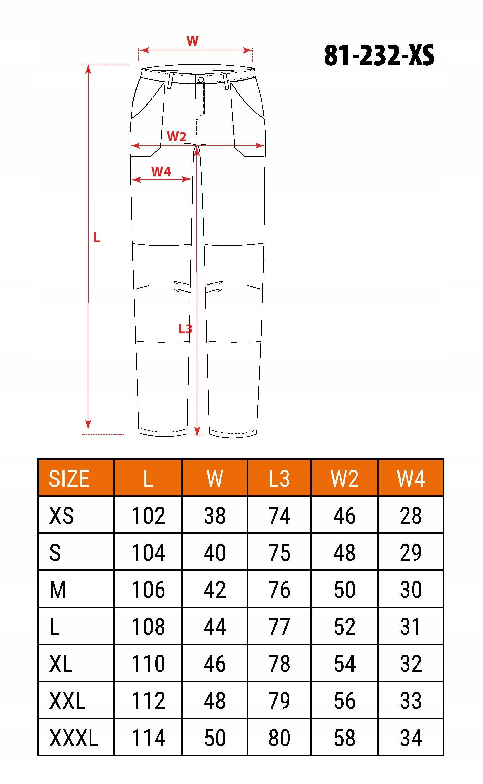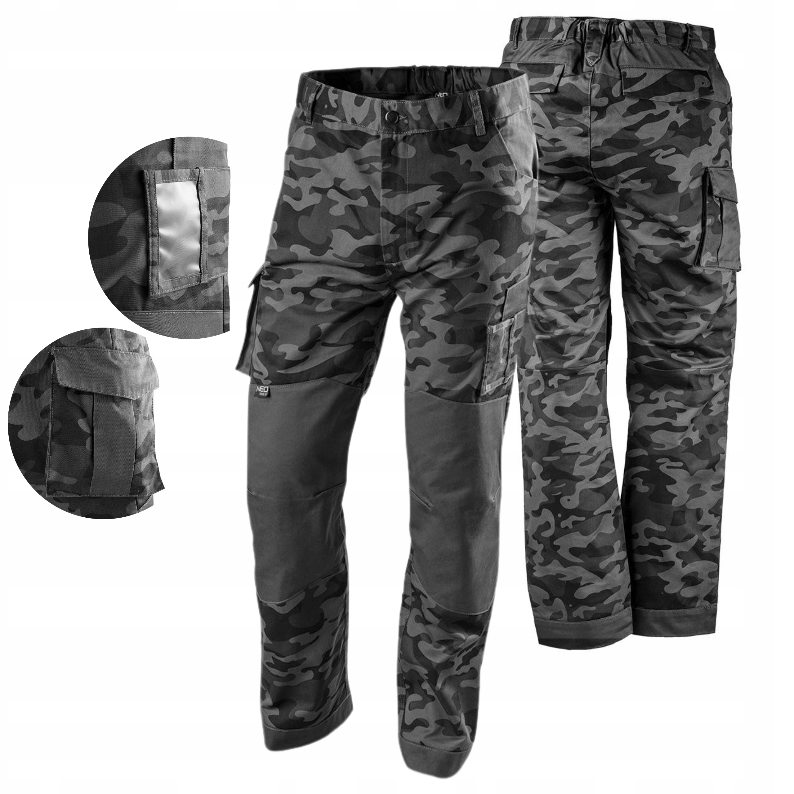 Spodnie robocze Camo URBAN, 81-232 NEO to wytrzymała odzież robocza należąca do autorskiej serii Camo URBAN marki NEO, charakteryzującej się unikalnym wzorem moro w odcieniach szarości. Spodnie wykonano z połączenia 60% bawełny, 37% poliestru oraz 3% elastanu, dzięki czemu zapewniają one odpowiednie właściwości termiczne i zarazem świetnie leżą na każdej sylwetce. Zastosowana w nich tkanina typu twill o gramaturze 255 g/m2 charakteryzuje się diagonalnym, skośnym splotem, dzięki któremu jest odporna na zagniecenia. Dodatkowo materiał cechuje się wysoką trwałością i odpornością na uszkodzenia oraz odkształcenia.