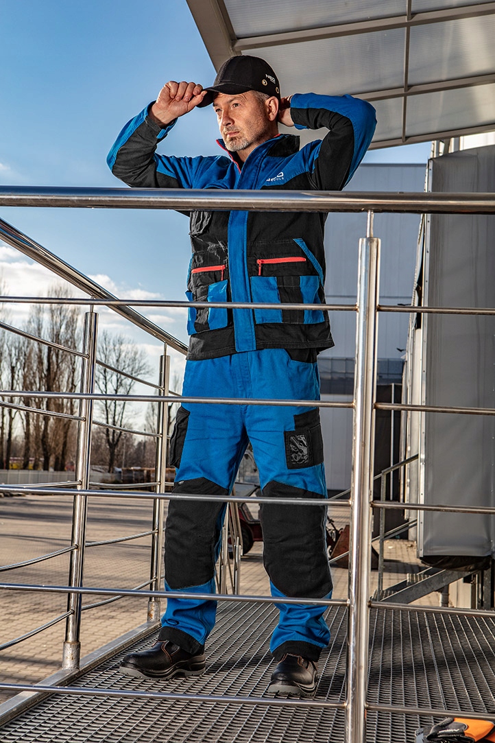 Spodnie robocze NEO z serii HD+ wykonane są z wysokiej jakości tkaniny bawełnianej. Profilowane kolana z kieszeniami na nakolanniki ochronne oraz pojemne i wytrzymałe kieszenie znacznie podnoszą komfort pracy. Elastyczne elementy umieszczone w pasie pozwalają na lepsze dopasowanie rozmiaru. Potrójne szwy wewnętrzne zwiększają odporność na rozerwania. Spodnie wyróżnia odważne połączenie kolorów, a nowoczesny miejski któj pozwala na użytkowanie produktu również poza pracą. Gwarantem jakości jest certyfikat europejski oraz wykonanie zgodne z normą EN ISO 13688:2013. Marka NEO spełnia oczekiwania profesjonalistów.