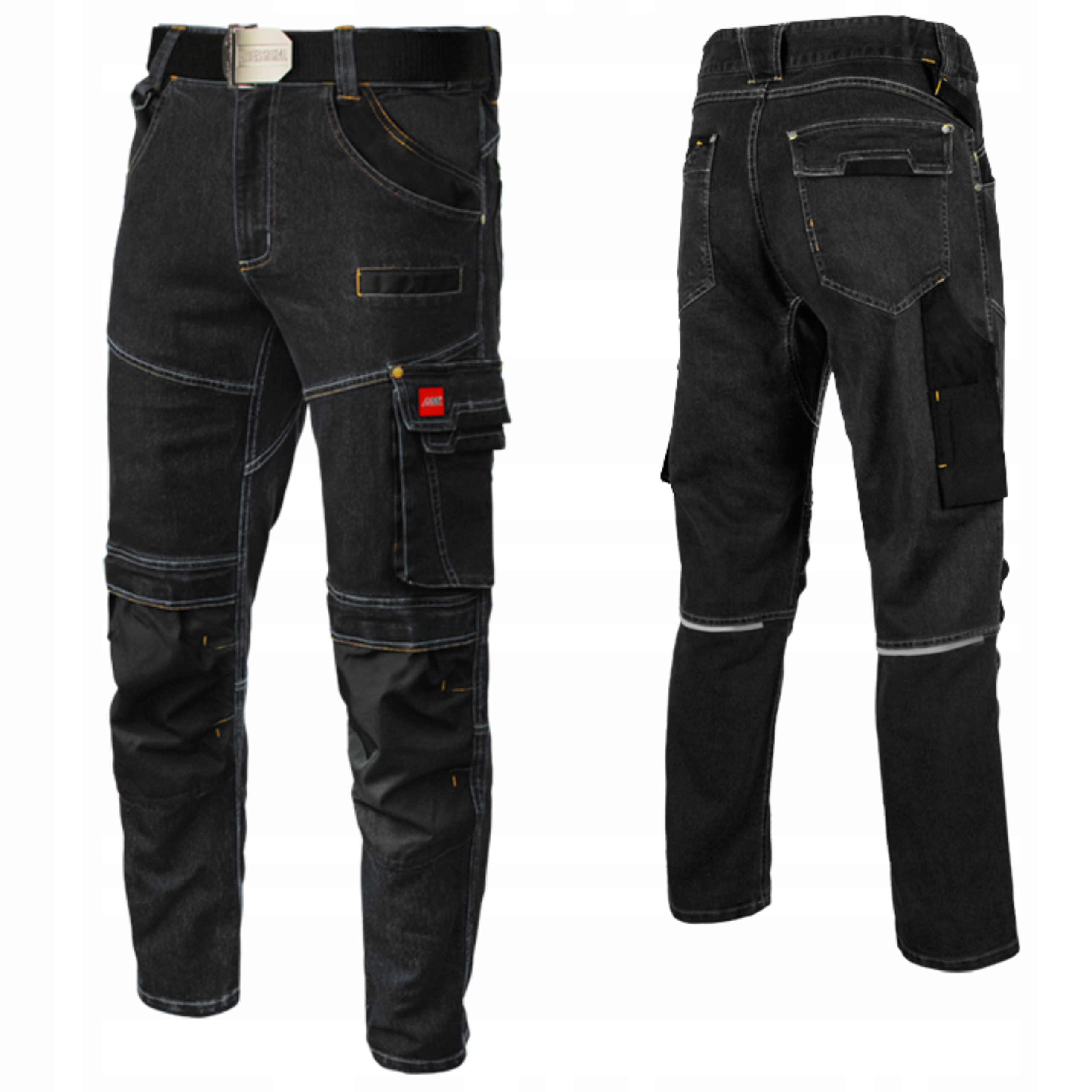 Spodnie robocze Jeans Stretch o wyjątkowo atrakcyjnym wzorze i doskonałej funkcjonalności. Wygodny i nowoczesny fason, w żaden sposób nie krępuje ruchów, dzięki zastosowaniu materiału z dodatkiem elastanu. Wykonane z najwyższej jakości tkaniny o składzie: 70% bawełna, 28% poliester, 2% elastan o gramaturze 340 +/-10 g/m2 oraz mocnym zwartym splocie.
