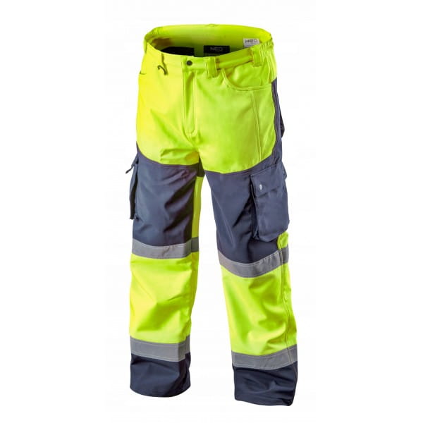Ciepłe spodnie robocze NEO o intensywnej widzialności, wykonane z wysokiej jakości, wytrzymałego materiału softshell. Wiatro i wodoodporność oraz wewnętrzna strona polarowa zapewniają komfort również w mroźne i wietrzne dni. Zastosowana membrana o wodoodporności 8000 mm pozwoli na pracę w czasie deszczu. Elastyczne gumy w pasie zapewniają łatwiejsze dopasowanie rozmiaru. Elementy najbardziej narażone na zabrudzenia zostały wykonane w ciemnym kolorze. Solidne kieszenie wytrzymują nawet duże obciążenie i przechowają wszystkie niezbędne narzędzia. Regulowany ściągacz na nogawkach zapewnia dodatkową ochronę przed zimnem i wiatrem. Gwarantem jakości jest certyfikat europejski oraz wykonanie zgodne z normą EN ISO 13688:2013