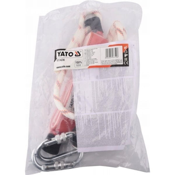 Amortyzator bezpieczeństwa YT-74236 z linką oraz dwoma karabińczykami to element systemu powstrzymywania upadku łączącego szelki bezpieczeństwa z punktem kotwiczącym. Amortyzator bezpieczeństwa został wykonany z odpowiednio pozszywanej taśmy poliestrowej. Podczas powstrzymywania upadku specjalnie zaprojektowane szwy ulegają stopniowemu rozpruciu spowalniając prędkość upadku