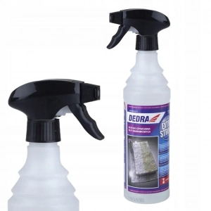 Sposób użycia preparatu DEDRA DED8823C01 jest prosty: płyn nanosi się na czyszczone miejsce za pomocą atomizera, a następnie, w celu maksymalizacji efektów, można go wetrzeć delikatnie za pomocą szczotki lub gąbki. Po odczekaniu 2-3 minut, powierzchnię obficie spłukuje się wodą.