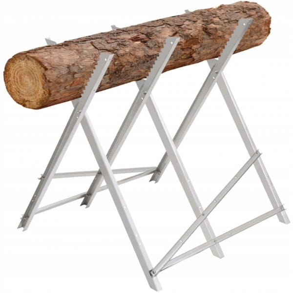 - Ułóż cięty pień między zębatymi górnymi końcami koziołka.