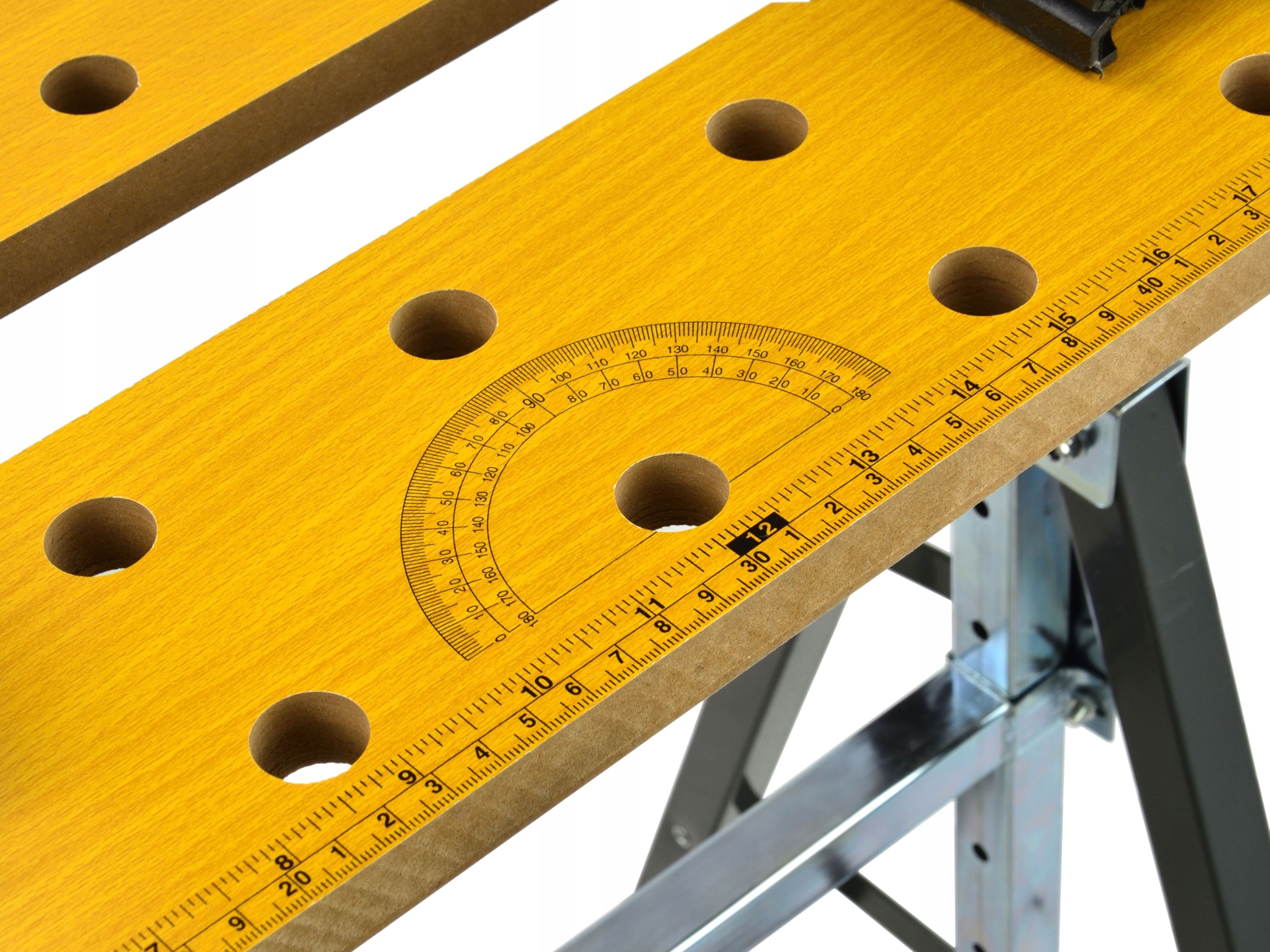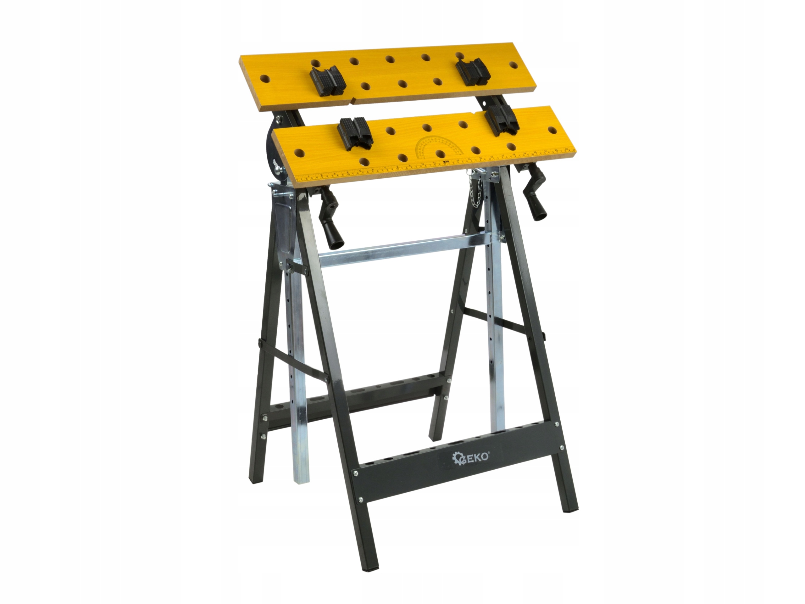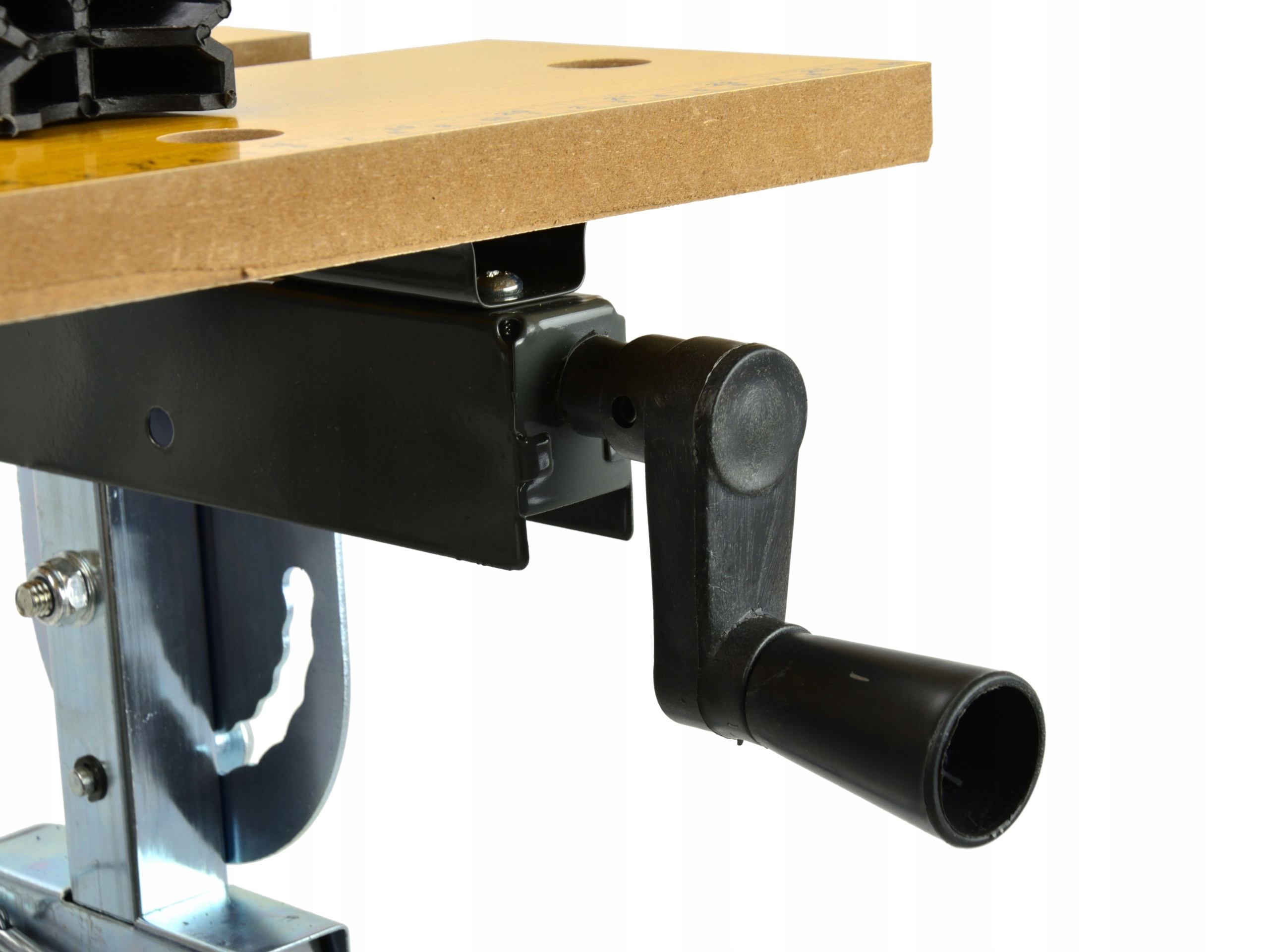 Wysokiej jakości stół warsztatowy (rzemieślniczy). Konstrukcja stołu umożliwia dopasowanie położenia blatu roboczego oraz jego szerokości do kształtu przedmiotu który chcemy w nim umieścić. Dodatkowo blat wyposażony został w przekładane szczęki zaciskowe umożliwiające mocowanie na stole przedmiotów o różnych kształtach. Regulacji stołu dokonuje sie za pomocą pokręteł umieszczonych po jego prawej i lewej stronie.