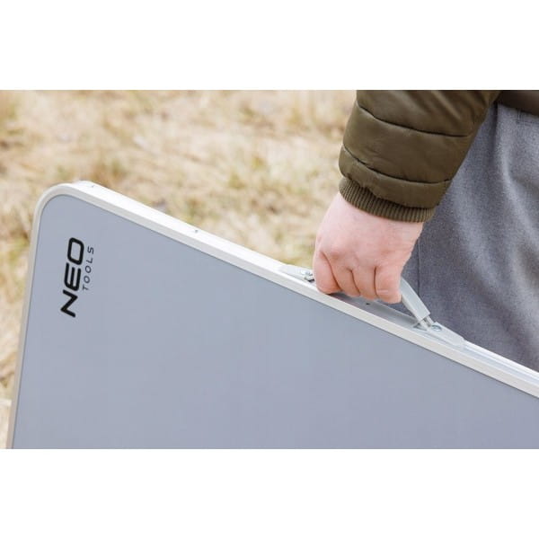 Stół biwakowy NEO TOOLS to praktyczne i kompaktowe rozwiązanie dla miłośników outdooru, które doskonale sprawdzi się podczas biwaków, kempingów, pikników czy w ogrodzie. Dzięki składanej konstrukcji, po złożeniu przyjmuje formę poręcznej walizki o wymiarach 80 x 60 x 3,5 cm, co ułatwia jego transport i przechowywanie. Lekka, ale wytrzymała konstrukcja wykonana z aluminium i płyty MDF zapewnia stabilność, a wbudowany uchwyt dodatkowo zwiększa mobilność. Blat o wymiarach 80 x 60 cm oraz nogi o wysokości 70 cm oferują komfortowe warunki użytkowania. Maksymalne obciążenie 25 kg sprawia, że jest to funkcjonalny mebel zarówno do spożywania posiłków, jak i innych aktywności na świeżym powietrzu. Stół NEO TOOLS waży zaledwie 3,4 kg, dzięki czemu jest niezwykle łatwy do przenoszenia. To niezastąpiony element wyposażenia każdego biwakowicza ceniącego wygodę i praktyczność.