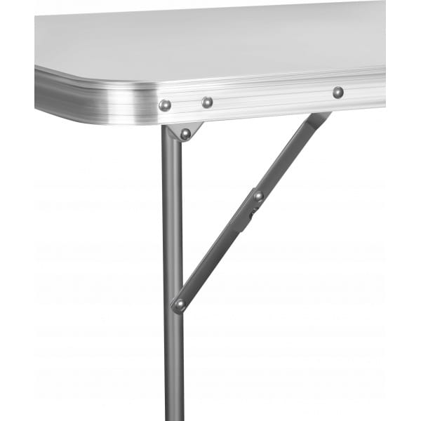 ✅Po rozłożeniu stolik osiąga wysokość 69 cm, co zapewnia komfort pracy w różnych warunkach. Blat wykonany z wysokiej jakości płyty MDF w białym kolorze został zabezpieczony odporną powłoką, a aluminiowa obręcz dodaje mu trwałości i eleganckiego wyglądu. Stabilny metalowy stelaż gwarantuje wytrzymałość oraz odporność na wieloletnie użytkowanie. Maksymalne obciążenie stolika wynosi 30 kg, dzięki czemu bez trudu poradzi sobie z narzędziami, naczyniami i innymi akcesoriami.