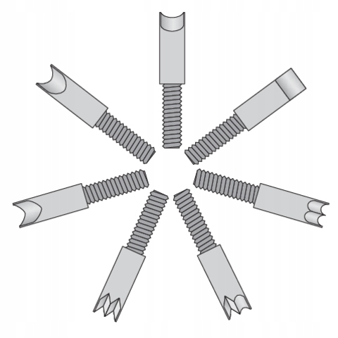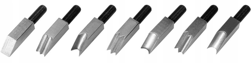 W zestawie znajduje się siedem ostrzy o różnych profilach, dzięki którym można uzyskać efekt frezowanej krawędzi.