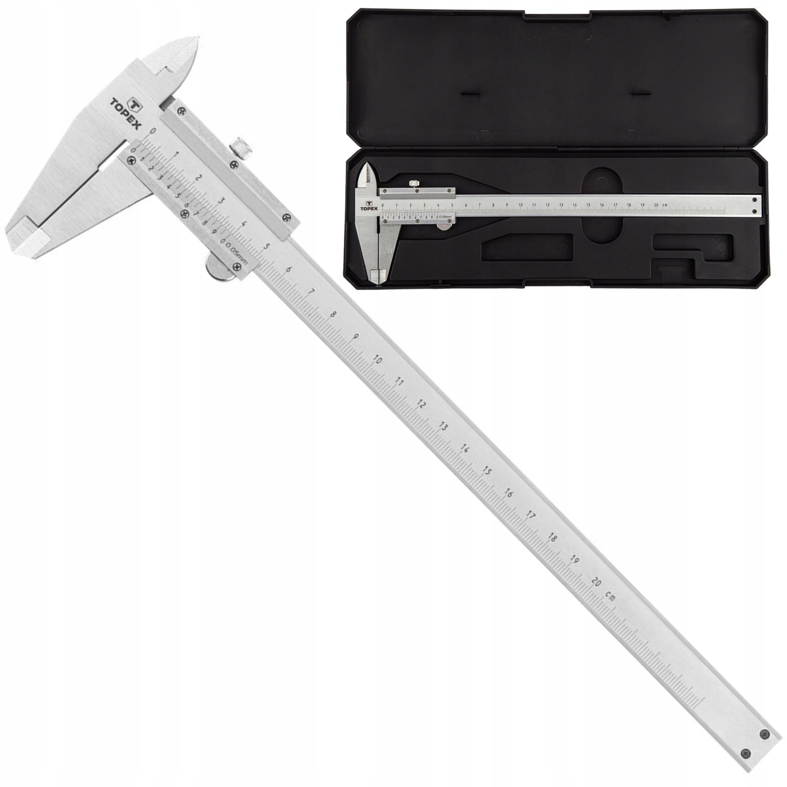 Suwmiarka TOPEX (nr ref. 31C616) o zakresie mierzenia 200 mm i dokładności pomiaru 0.05 mm jest jednym z podstawowych przyrządów pomiarowych. Umożliwia pomiary wewnętrzne i zewnętrzne. Śruba zaciskowa blokująca suwak ułatwia dokonanie pomiaru. Marka TOPEX skierowana jest do majsterkowiczów.