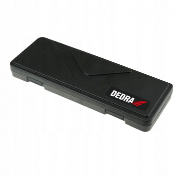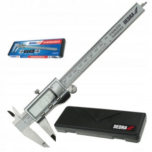 Suwmiarka cyfrowa DEDRA MC0020 posiada cyfrowy wyświetlacz pozwalający na precyzyjny, a przede wszystkim prosty odczyt do setnych milimetra. Dokładność pomiaru jest bardzo wysoka wynosi bowiem +/- 0,01mm/m. Umieszczona z boku suwaka śruba blokuje jego posuw pozwalając zabezpieczyć suwmiarkę po dokonanym pomiarze, tak aby suwak nie przesunął się przed odczytem.