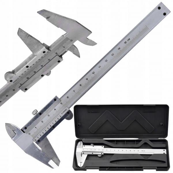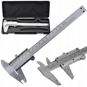 Suwmiarka o długości pomiarowej 150 mm. Doskonale sprawdzi się w przemyśle, podczas obróbki metali, drewna itp.