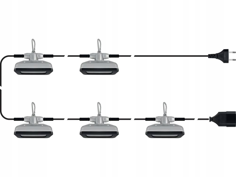 Reflektory połączone są przewodem o długości 15,4 m. Zestawy można łączyć (maksymalnie 10 zestawów). Każdy reflektor ma hak do przywieszenia.