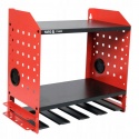 Organizer warsztatowy o dużej wytrzymałości do przechowywania narzędzi. Składa się z dwóch pełnych półek i z półki z 4 kieszeniami do podwieszenia narzędzi.