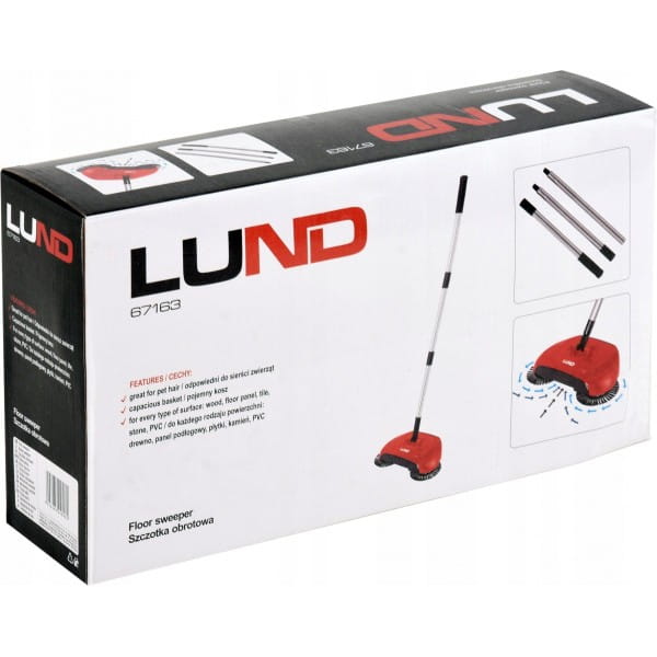 Praktyczna obrotowa szczotka LUND doskonale zastąpi klasyczną szczotkę i szufelkę lub głośny odkurzacz. Ruch obrotowy szczotek sprawia, że wszystkie zanieczyszczenia trafiają bezpośrednio do zbiornika na kurz.