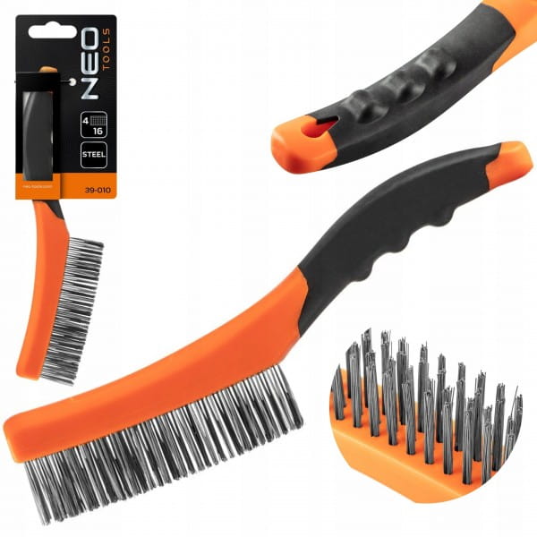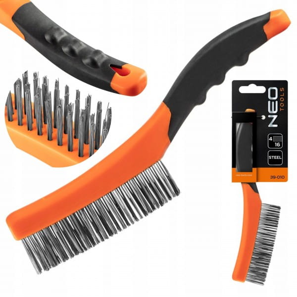 Szczotka druciana, drut stalowy, 4 rzędy, 39-010, NEO niezbędna przy wszystkich pracach, gdzie potrzebne jest dokładnie oczyszczenie powierzchni. Przy jej pomocy można oczyścić z warstw starej farby, rdzy, czy innych zabrudzeń.