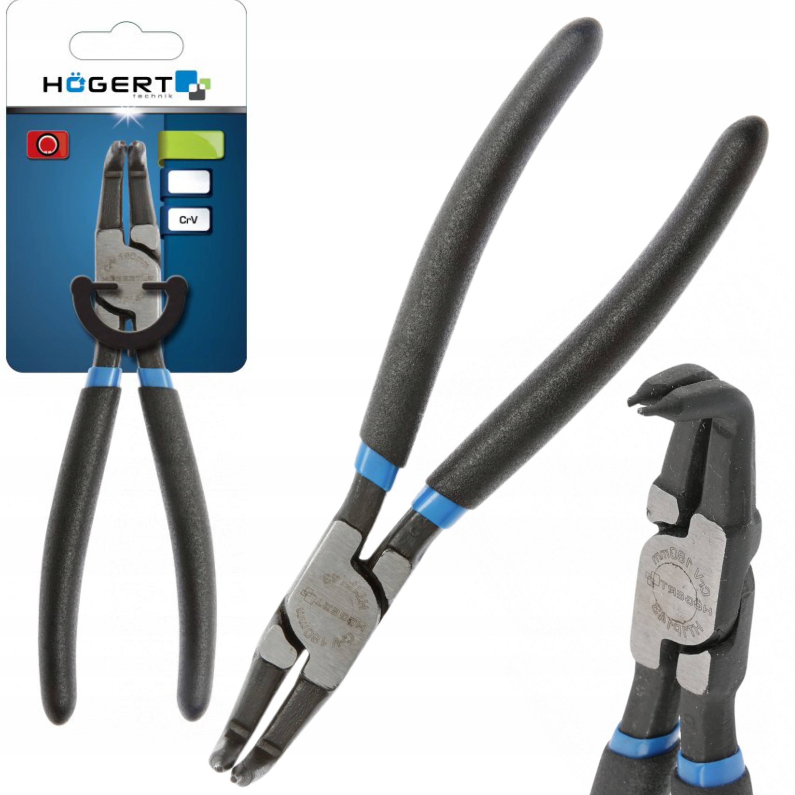 Szczypce do montażu i demontażu pierścieni blokujących wewnętrznych. Rękojeść pokryta tworzywem umożliwiająca pewny, wygodny chwyt i operowanie szczypcami.